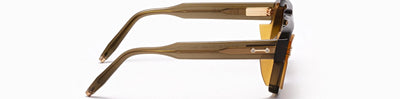 Bold and generously proportioned, the Hercules frame draws inspiration from premium timepiece silhouettes while evoking the sophisticated aesthetic of iconic Italian film stars. Akoni's artisans have meticulously integrated their signature innovative side shields within the substantial acetate construction, creating an intriguing interplay of textures and hues that enhances both frontal and profile perspectives.