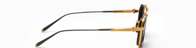 The Solis model, Akoni’s modern reinterpretation of the timeless navigator design, showcases a front crafted from Japanese acetate paired with a Japanese titanium frame. It includes adjustable temples and degradé lenses for enhanced comfort and style.