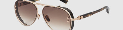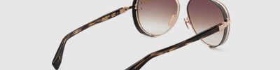 This model features a brown-gold frame crafted from acetate and titanium, paired with brown gradient polycarbonate lenses. The lenses measure 62mm in width, complemented by an 11mm bridge and 145mm temple length. These sunglasses do not include polarized or photochromic lenses.