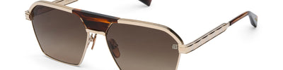 The BALMAIN Sergeant BPS177 C is a unisex eyewear piece crafted from titanium, featuring a gold frame and brown/havana lenses. Its dimensions are 60-16.0-145.0, offering a refined balance of strength and style.