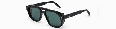 The AKONI Phoenix frame combines classic and modern elements, inspired by the largest constellation, featuring acetate construction and signature rivets. The redesigned shorter temples seamlessly align with the frame's aesthetic, while the deep emerald green lenses and side shields add a striking color contrast. This masculine yet unisex frame appeals to trendsetters with a retro and cinematic allure.