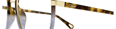 The CHLOÉ CH0034O 18 eyeglasses, designed for women, come in a beige injection-molded frame with clear lenses. Supplied with the original Chloé case, these glasses feature a 50 mm caliber, an 18 mm bridge, and a height of 44.5 mm. Certified with authentication code 140, this model belongs to the Spring-Summer 2025 collection. The EAN is 889652543499.