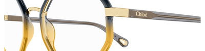 Women's eyeglasses from the Chloé collection, crafted with a black/grey/nude injected frame and clear lenses. Their dimensions include a 53 mm diameter, a 20 mm bridge, and a 51.6 mm height, providing a comfortable and stylish fit. Designed for the Fall/Winter 2022 season, they combine elegance and functionality with Chloé's signature quality.