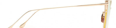 Crafted with a custom acetate brow paired with a titanium inner lens frame and bridge, this model features a custom acetate lens rim highlighted by nylor detailing. It includes titanium nose pads and temples featuring pressed line accents, finished with acetate tips. Equipped with Dita's distinctive hex screw hinges, the lenses offer full UVA and UVB protection alongside an anti-reflective coating. Made in Japan. Dimensions: temple length 141 mm, lens width 54 mm, nose bridge 17 mm.
