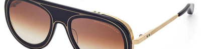 This Dita aviator showcases a titanium frame finished in black and gold tones, complemented by acetate temple tips. It features intricately laser-etched lenses and a floating side rim with nylor construction and diamond accents. The brown gradient lenses offer full UV protection, shielding your eyes from harmful sun exposure. Supplied new and authentic, it comes with a protective case and cleaning cloth. Frame: Black/Gold; Material: Titanium; Lens: Brown gradient; UV protection: 100%; Dimensions—Lens width: 55mm, Bridge: 22mm, Temple length: 140mm.