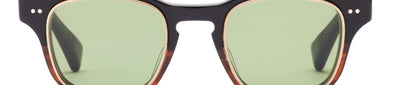 Crafted in Japan, these sunglasses feature a 47mm lens width, 23mm bridge, and 147mm temple length. The KASBAH 19011 model combines a black-to-tortoise frame with antique 18K gold accents and vintage green lenses enhanced with gold flash and anti-reflective coatings. Offering 100% UVA and UVB protection, these authentic, non-polarized sunglasses deliver both style and expert-level eye safety.