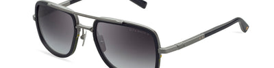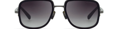 The DITA MACH-S DTS412 features a titanium front frame complemented by acetate detailing around the lenses. It includes titanium nose pads and acetate temple tips for enhanced comfort. The design incorporates a double nylor detail, and the lenses provide full UVA and UVB protection with an anti-reflective coating for optimal clarity.