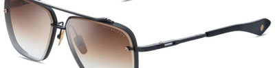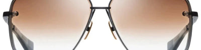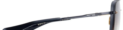 The DITA MACH SIX DTS121 features titanium lens rims secured with screw-mounted lenses and a distinctive forked hinge design using Dita’s signature hex screw hinges. It includes a dual brow bar for varied finishes, custom titanium nose pads, and acetate temple tips engraved with a laser-lined pattern. The lenses provide full 100% UVA and UVB protection enhanced by an anti-reflective coating. Crafted meticulously in Japan.