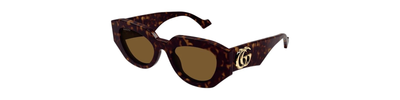 Discover the Gucci GG1421S 002, a sophisticated women's sunglasses crafted from sustainable recycled materials. This full-rim design features an irregular shape with a classic round silhouette, delivering timeless elegance with contemporary consciousness. The havana frame showcases Gucci's signature aesthetic, while the 37.9 mm lens height and 20 mm bridge width ensure a refined fit. With 145 mm temples and UV Index 2 protection, these sunglasses combine style with practical sun defense. Part of the FW202303 collection, they represent the perfect intersection of luxury craftsmanship and environmental responsibility.